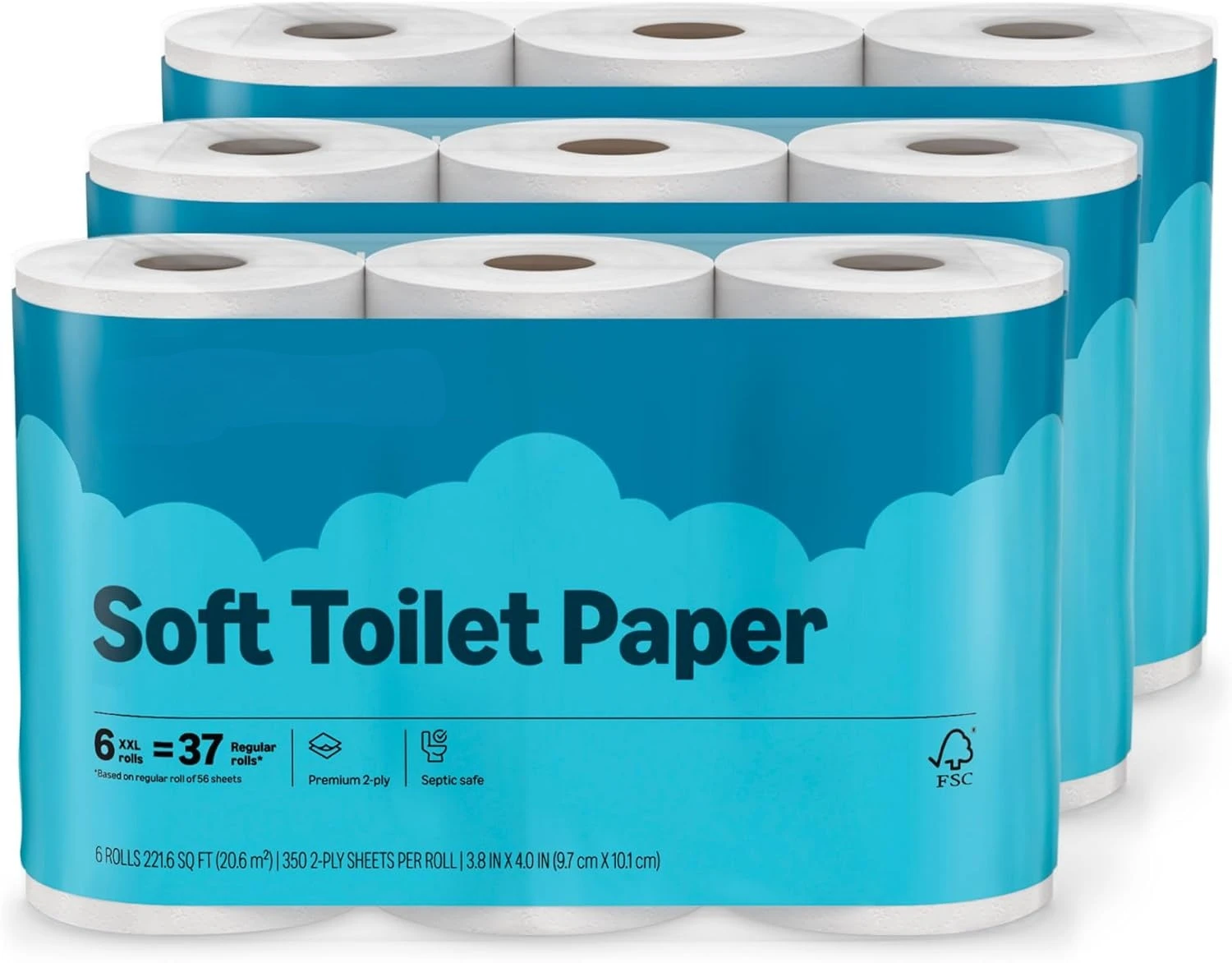 2-Ply Soft Toilet Paper, 30 Rolls (5×6) – Equivalent to 185 Regular Rolls