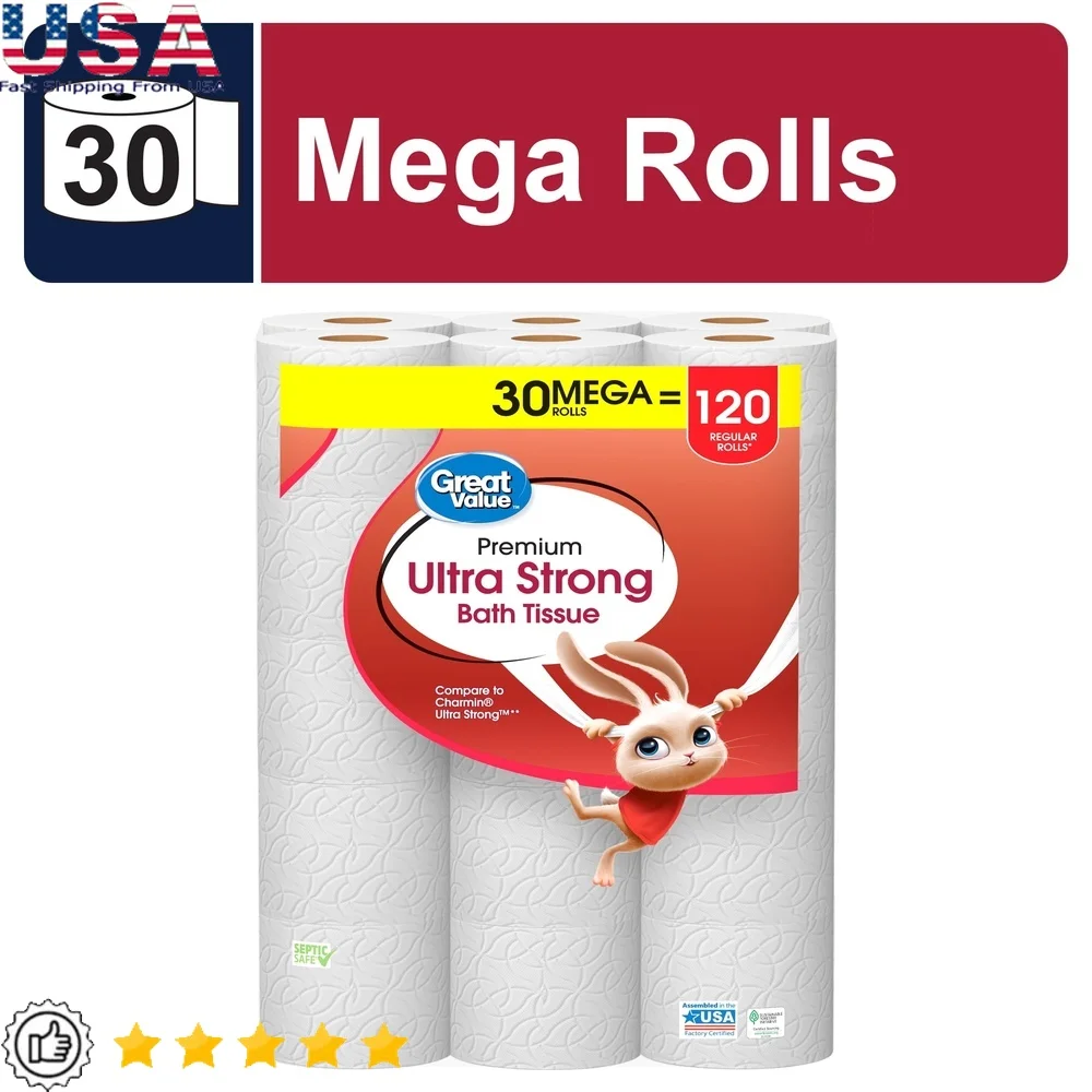 Ultra Strong 2-Ply Toilet Paper – 30 Mega Rolls, Embossed & Septic-Safe